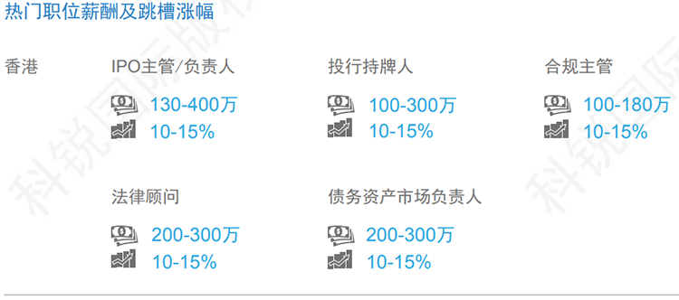 数据来源:猎头公司evo真人视讯国际资深行业专家对2019年热门职位薪酬范围及跳槽涨幅的预测。薪酬为基本年薪。单位为港币。