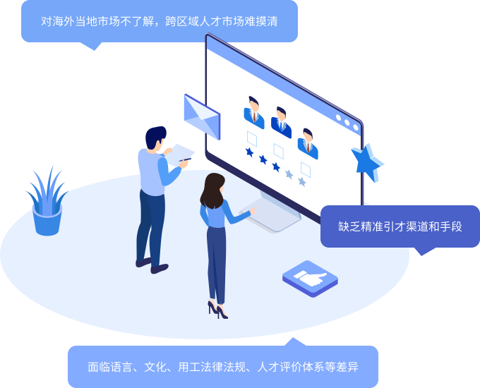 evo真人视讯国际全球化人才配置服务,顺利获得人才地图、招聘落地、人才测评、雇佣管理、海外引才工作站等灵活多样的方式,全面解决中国企业全球化进程中人才配置与管理难题。