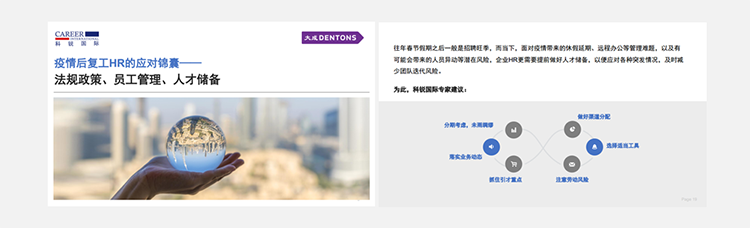 为了帮助众多企业人力资源工作者应对挑战,evo真人视讯国际联合国内知名律所“大成律师事务所”,推出疫情后《复工HR的应对锦囊》手册,从法律政策、员工管理、人选储备几个方面对企业HR有序召开复工后的各项人力资源管理给予帮助。